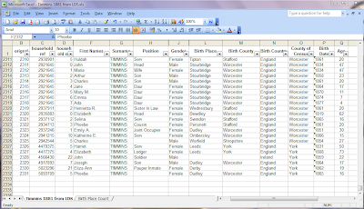 Having all the data in an Excel spreadsheet has enabled statistics heaven!! But it has also highlighted lots of errors in my original investigation using Find My Past, which goes to show that you can’t beat working with the original secondary source material, but even the LDS transcript has its anomolies. For instance West Bromwich has been spelt 10 different ways? The transcribers have been true to the original text but this does not help when you want to filter in or out certain data.