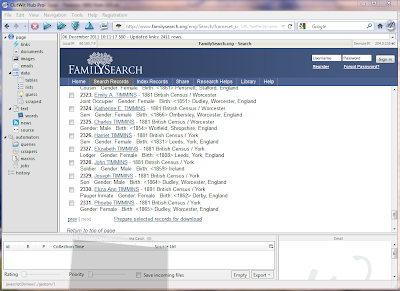 Before you start catching data it is a good idea to play around with Outwit Hub to see if more data is available by selecting the other options in the left hand panel. Look at the source option and check through the page using find input field, just type in what you are looking for e.g. Timmins – this shows no results. I tried this on a FMP page and there was additional information that did not show on screen.